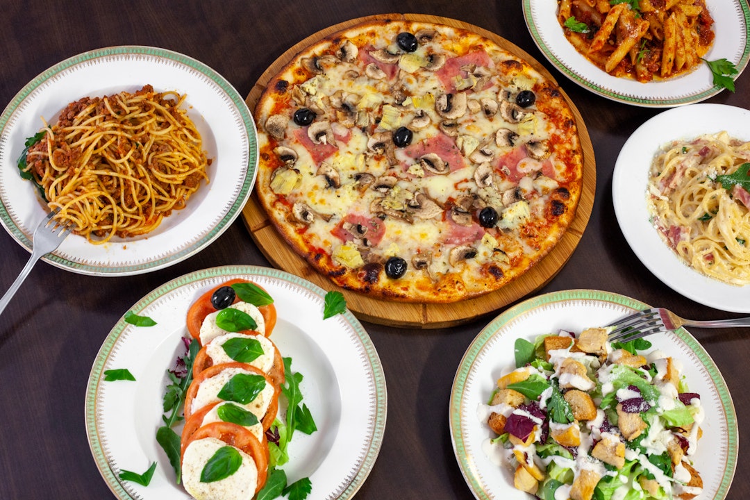 PENNE BOSCAIOLA + SPAGHETTI CARBONARA+ PIZZA CAPRICCIOSA + PIZZA SAPOR D’ITALIA = 32€ PARA 4 PERSONAS PIZZA 4 QUESOS + POSTRE (TIRAMISU) = 13,50€ PARA 1 PERSONA SPAGHETTI CARBONARA + PIZZA HAWAIANA = 16€ PARA 2 PERSONAS SPAGHETTI BOLOGNESE + PIZZA PROSCIUTTO + PIZZA DE LA CASA = 22€ PARA 3 PERSONAS